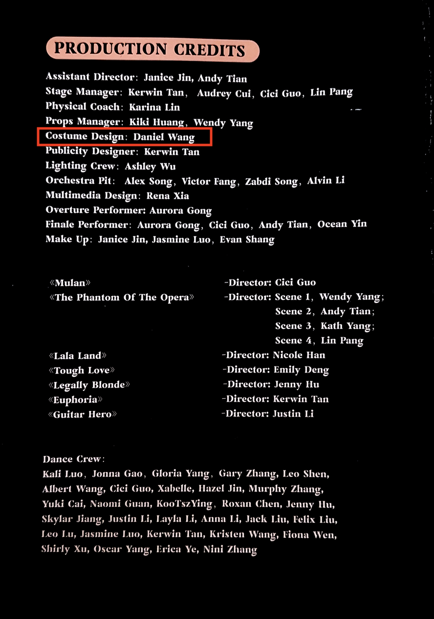 Last year's 24Fall Fashion Show was our first time holding a fashion show event, so at that time, I placed more emphasis on the process of the event. But this time, I not only designed the process perfectly, but also paid more attention to the design itself. In this fashion show, I designed the model's route, designed and prepared the performance materials, coordinated the equipment team, and also helped the designers improve and optimize their works. Since my future major is related to fashion.